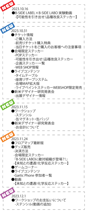 体験型のワークショップエリア、企画ステッカーの展示販売エリア、リアルタイムで制作を観られるライブコンテンツや会場限定アイテムなど、様々な”実験”を通して皆様に「心が動く瞬間」を体感していただきます!