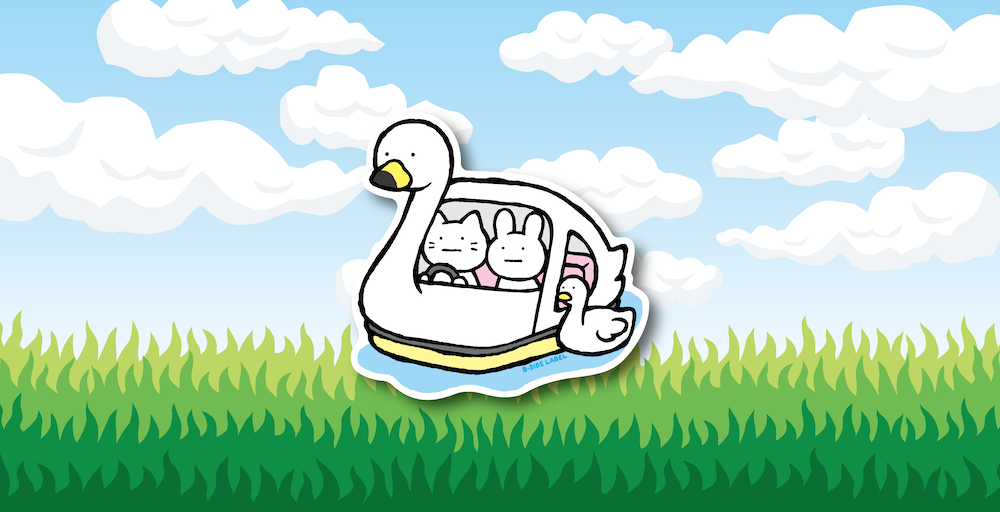 ▲スワンボートでデート(?)するまがおねことうさぎ。