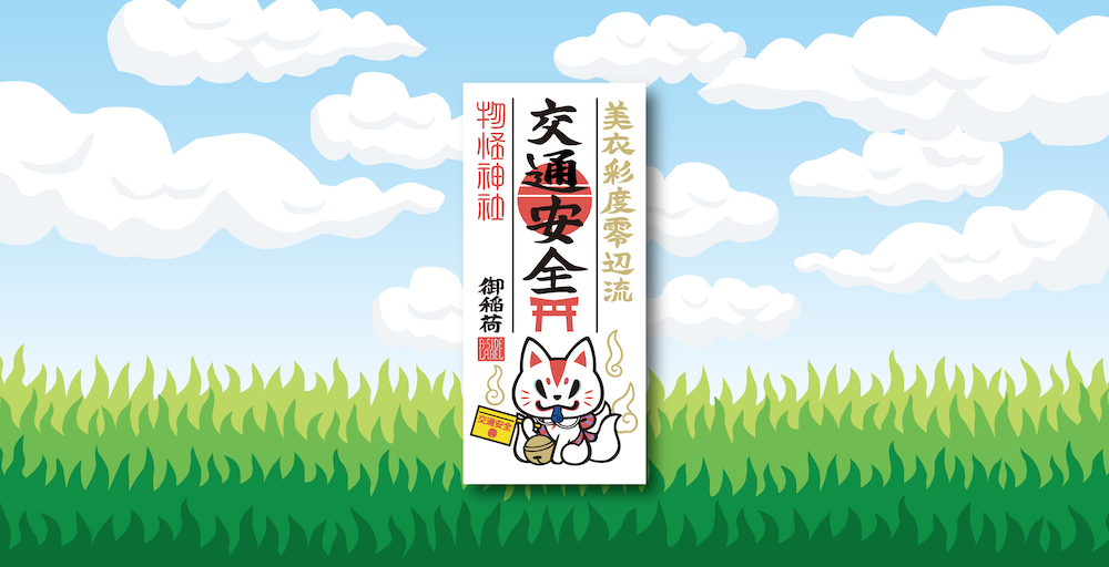 おいなりさん印の交通安全ステッカーで、アウトドアを楽しみましょう。