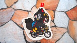 バイクとヘルメットにはお気に入りのステッカーを貼っています。