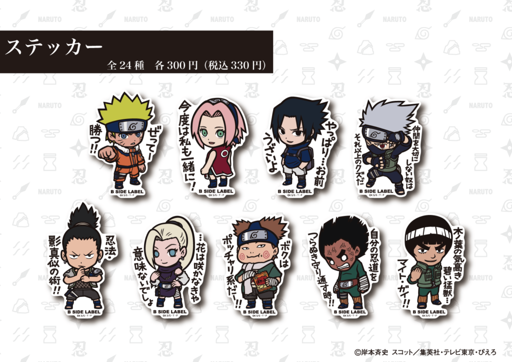 今回のステッカーは「NARUTO-ナルト-」シリーズより全24キャラクターがラインナップ。