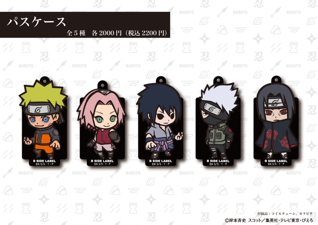 高耐久が嬉しいラバー製のパスケースは、うずまきナルト、春野サクラ、うちはサスケ、はたけカカシ、うちはイタチの5種。