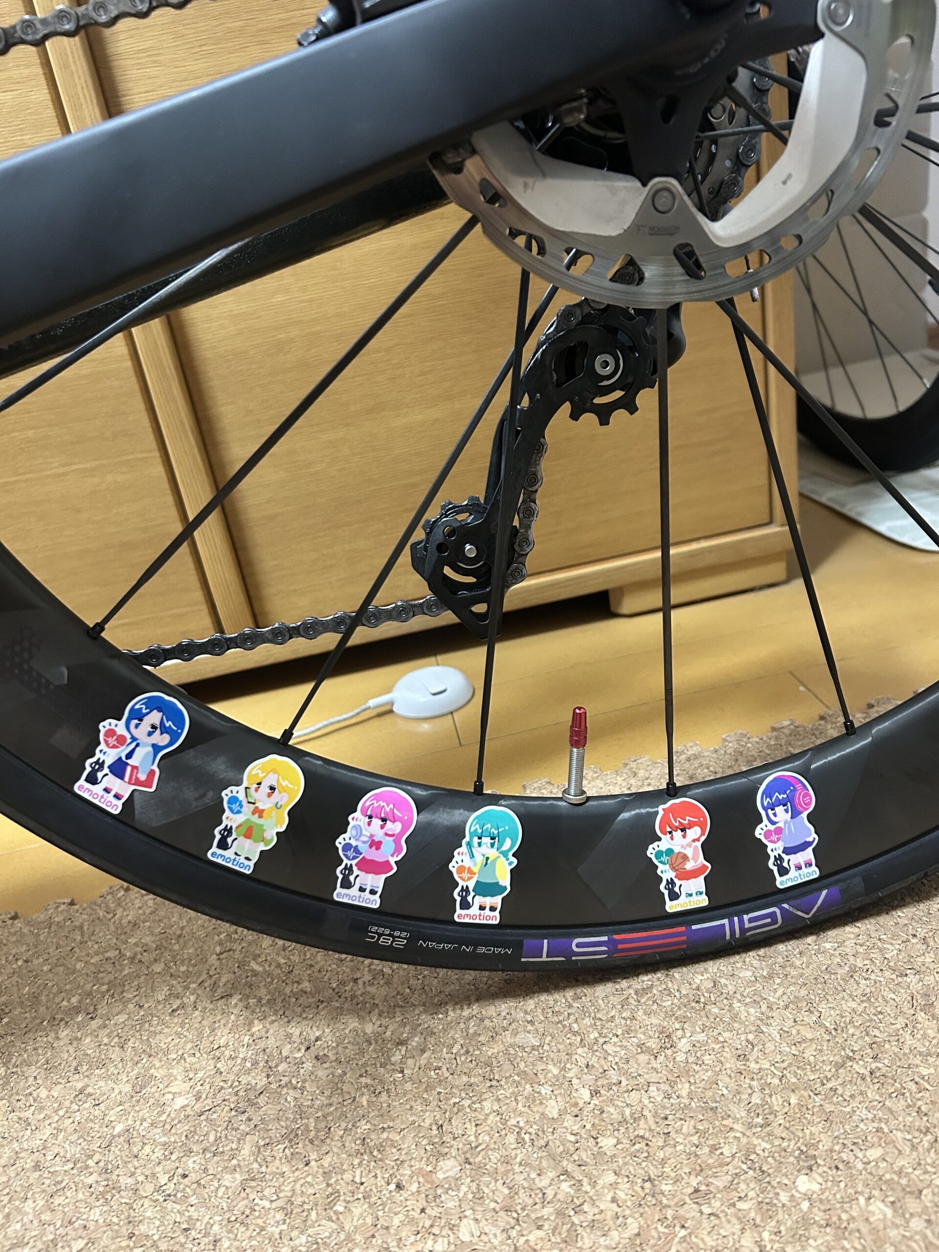 ▲SALAD DAYSのメンバーを自転車のホイールに貼ってくださいました!なんだか一緒に走っている気になりますね〜♪