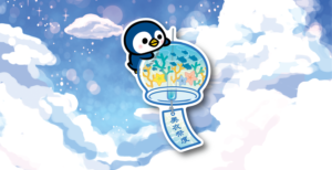 ▲心地よい音を奏でる風鈴と、それに寄り添うペンギン。