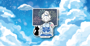 ▲縁側でまったり花火を鑑賞する女の子と黒猫ちゃん。