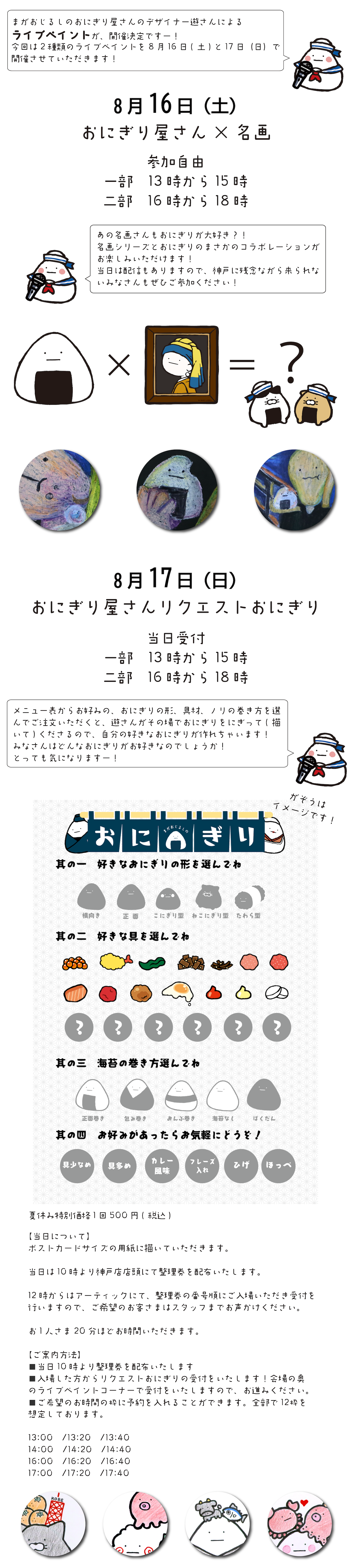 【A[R]TTIC8月】まがおじるしのおにぎり屋さん できたてホカホカ展!2