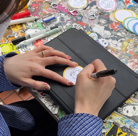 制作仕様:専用の用紙にその場で似顔絵を手描きしたものをキーホルダーにしてお渡し