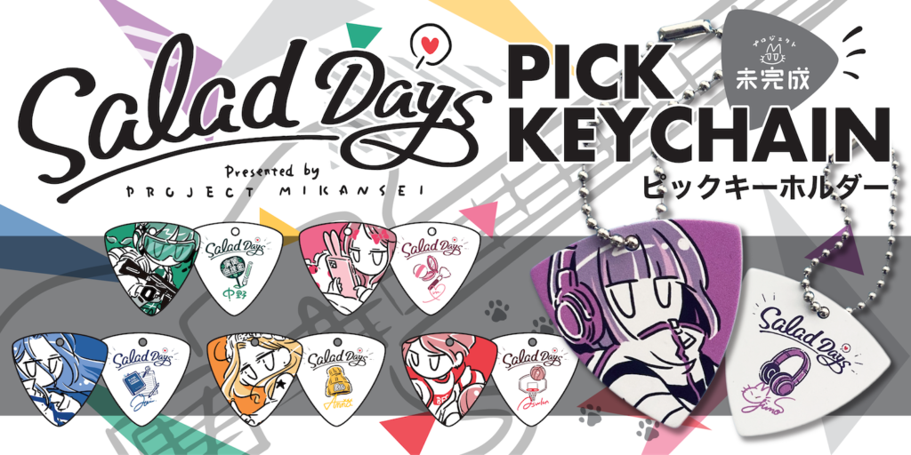 身の回りのアイテムに「SALAD DAYS」のピックキーホルダーをつければ、彼女たちの音楽が今にも聴こえてきそうです。