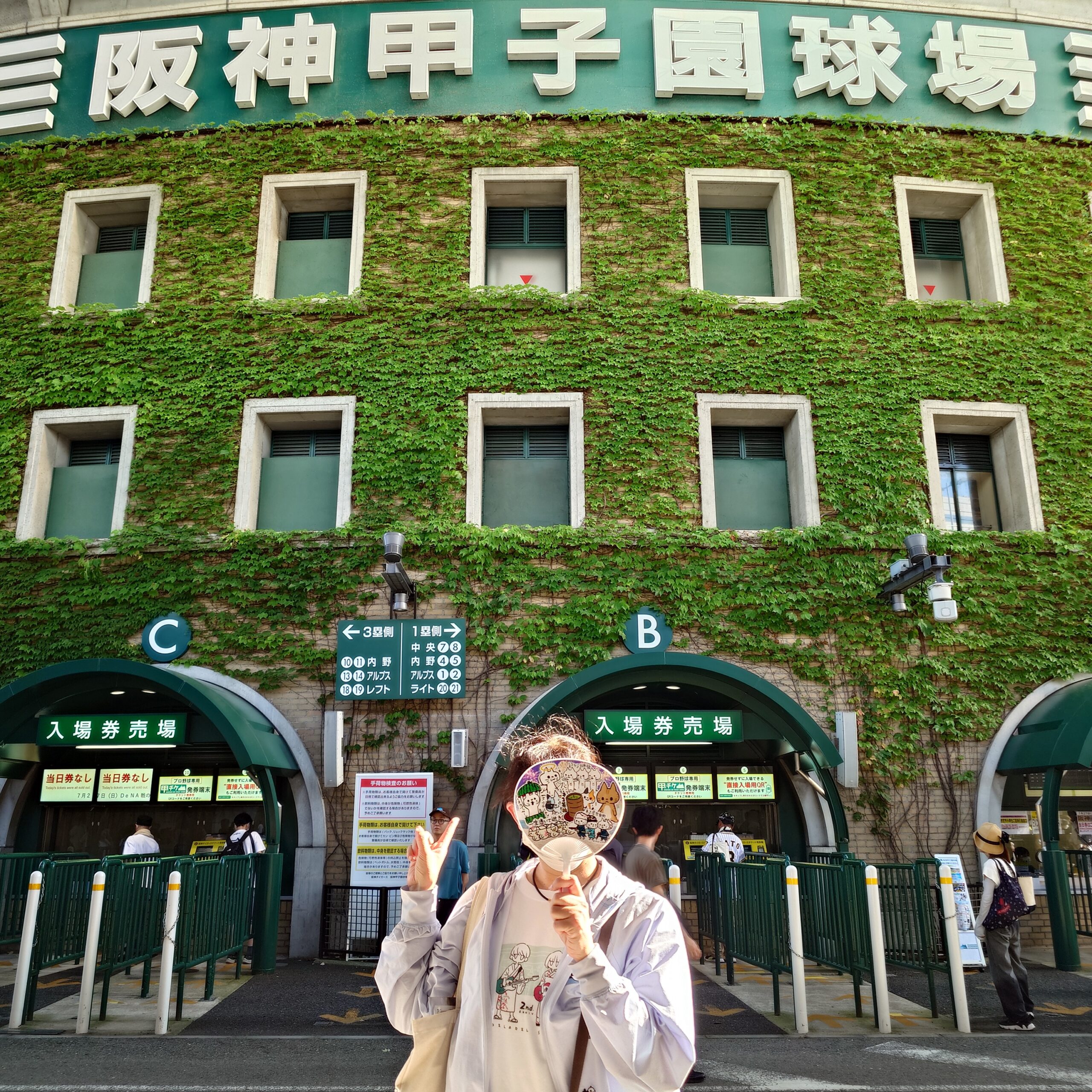 ▲手作りの“ベタ貼りうちわ”と仙台限定のTシャツを着ていざ甲子園へ!お気に入りのキャラクターと一緒なら応援パワーも倍増ですね!