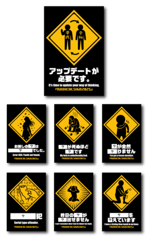 ラディカルサインステッカーとはそんな気持ちをちょっぴり過激に、そしてユーモラスに代弁してくれる、標識風デザインのシリーズです。