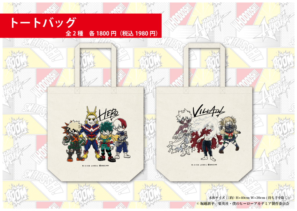 トートバッグはヒーローと敵<ヴィラン>の2種類のデザイン。