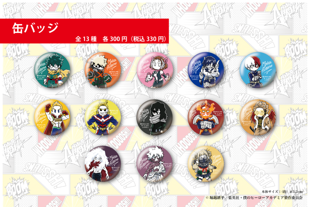 TVアニメ『僕のヒーローアカデミア』第4弾 2025年11月21日(金)発売 ステッカー 全13種 税込330円 税別300円 缶バッジ 全13種 税込330円 税別300円 チャーム 全13種 税込660円 税別600円 トートバッグ 全2種 税込1,980円 税別1,800円 ・B-SIDE LABEL 直営店 ・B-SIDE LABEL WEB SHOP(11月21日正午12:00 販売開始予定) ・B-SIDE LABEL POPUP SHOP ※B-SIDE LABEL商品取扱販売店 順次展開予定