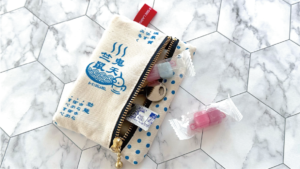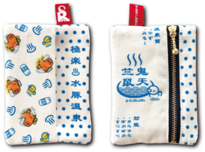 温泉マークやレトロなドット柄が散りばめられた、心落ち着くデザインです。