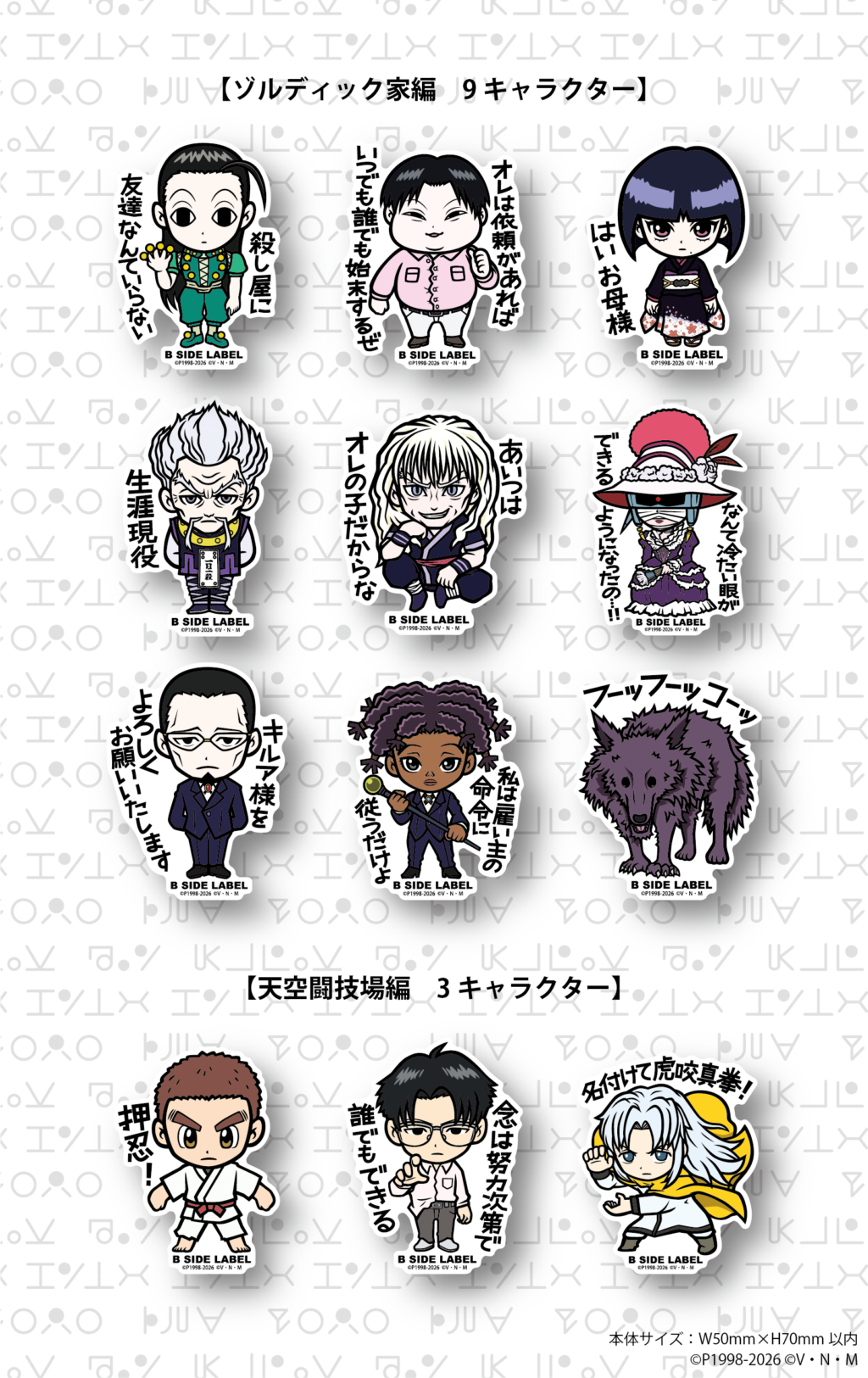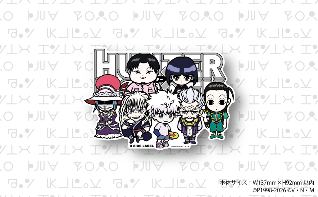 TVアニメ『HUNTER×HUNTER』コラボレーションステッカー 第2弾 発売日:2026年2月27日(金)発売 価格: ・レギュラーステッカー 全14種 各350円(税込385円) ・BIGステッカー 全1種 900円(税込990円) 取扱店舗: ・B-SIDE LABEL直営店 ・WEB SHOP 当日の12:00より販売開始 ※B-SIDE LABEL商品取扱販売店 順次展開予定