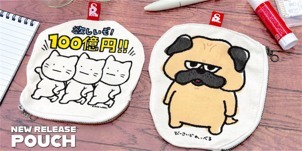 ユーモアたっぷりのステッカーデザインを、ぜひポーチでもお楽しみください♪