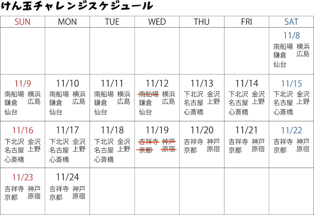 ※一部スケジュール(11/12,11/19/)に変更がございます。
