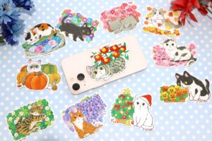 四季折々、いろいろなネコちゃんの姿を楽しめるにゃんポ〜ズステッカー。