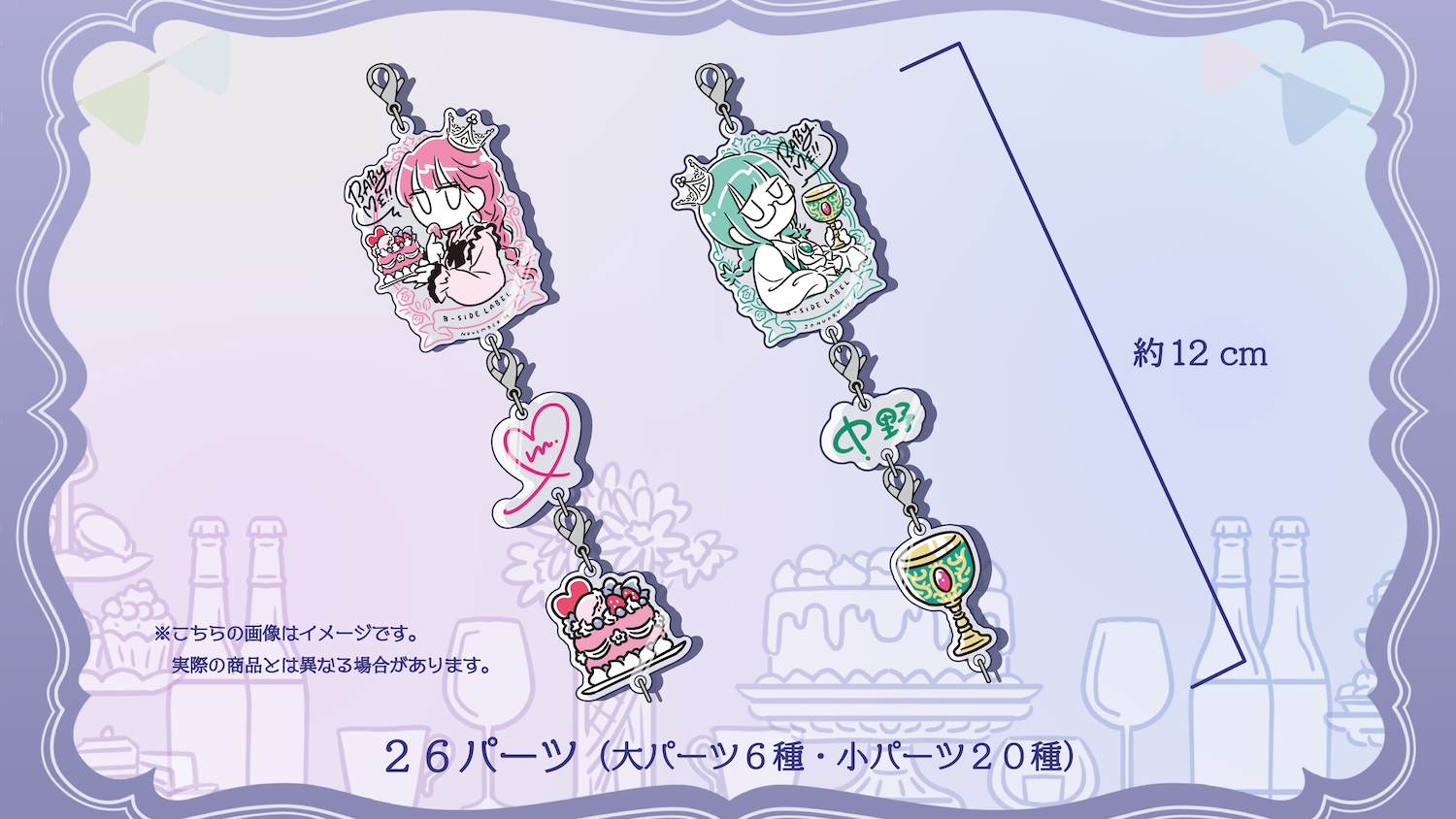 ・チャームのデザインは、当日ご用意している大チャーム6種の中から1個、小チャーム20種の中から2個、計3個のお好きなデザインをお選びいただけます。