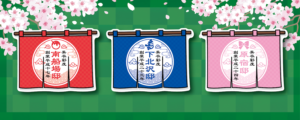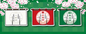 ▲各店限定ステッカーは、美衣彩度庭園の暖簾。