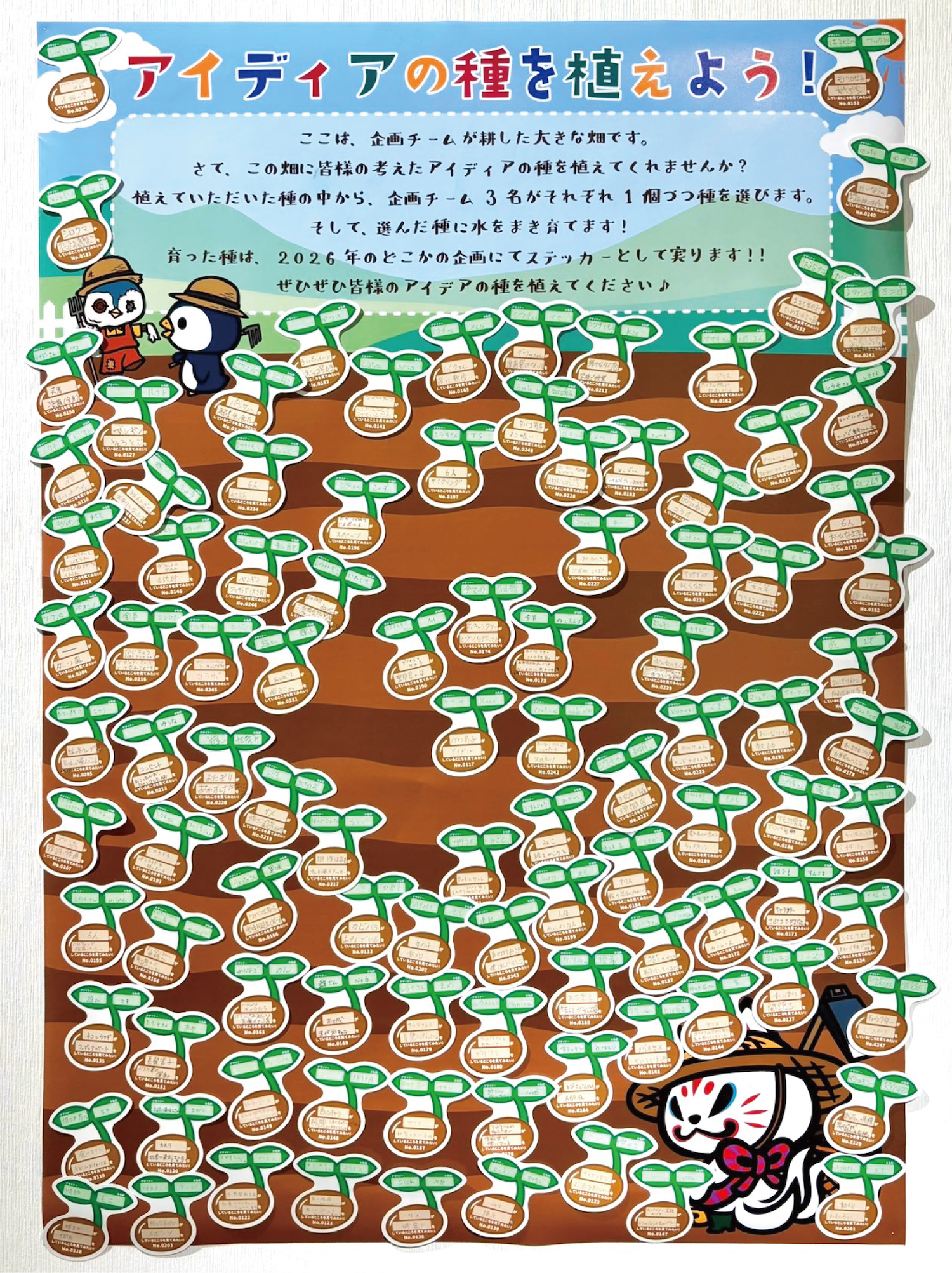 企画部が耕した畑には、皆様のステッカー愛がたっぷり詰まったアイディアの種が、こんなにたくさん集まりました!