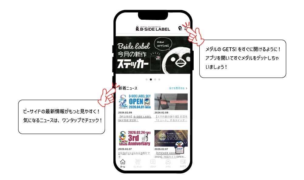 メダル集めが、もっと遊びやすくなりました!右上の【GETS!】をタップするだけで、メダルがよりゲットしやすく。最新ニュースや店舗ニュースも、ワンスクロールでチェック!気になる情報はそのままタップして、すぐ詳細へ。そして【HOT SNAP】では、いま“熱い”SNAPをひと目でチェックできます。