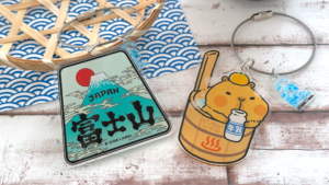 素材の質感や、ステッカーとはちょっぴり違う背景のデザインなど、雑貨ならではの魅力がいっぱいのキーリングとマグネット。