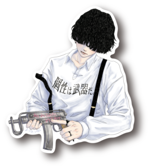 「個性は武器だ。」と力強く掲げながらも、よく見てみると、彼の手は銃の引き金に指をかけられていません。