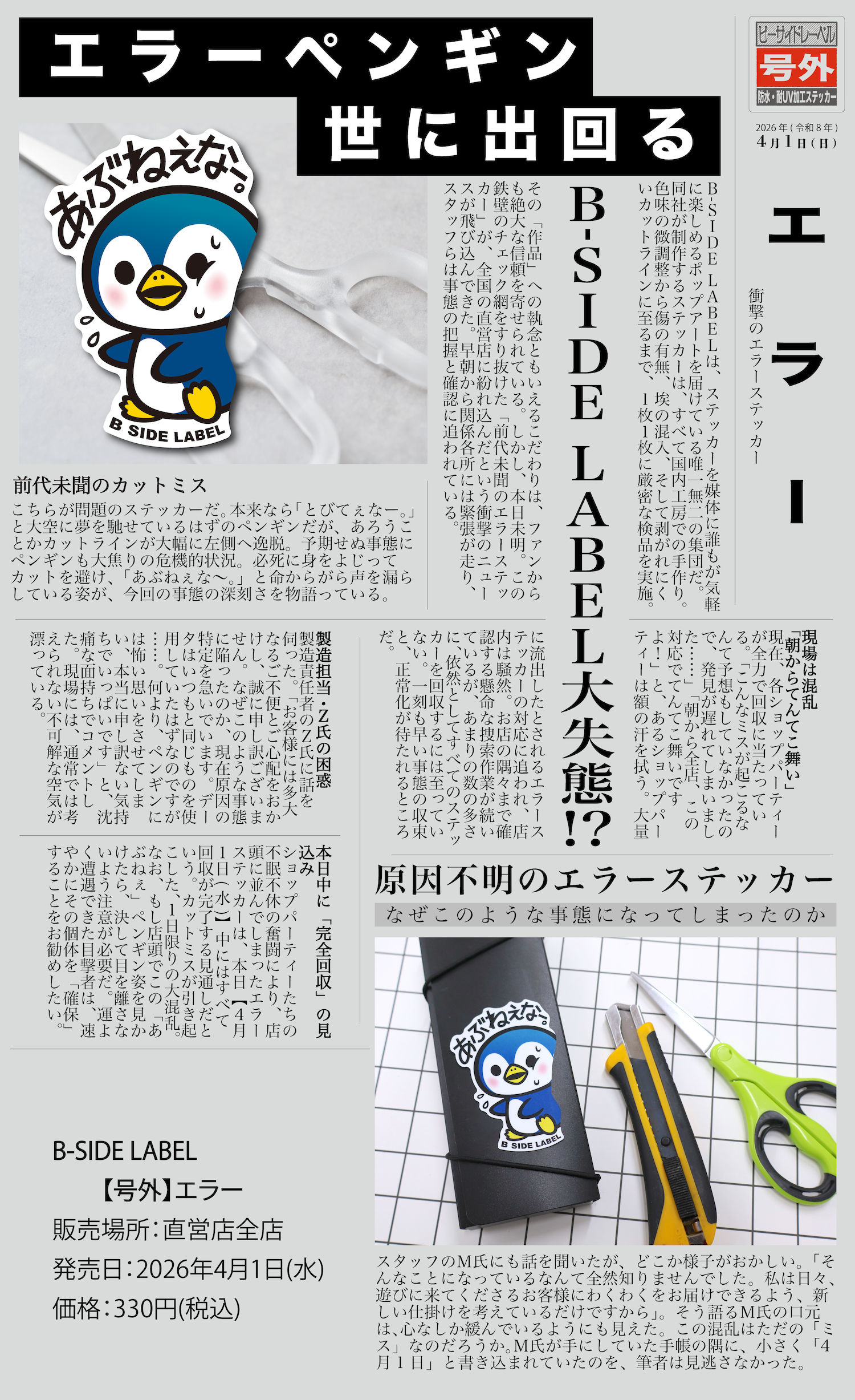 本日未明、全国の直営店を騒がせた「エラーステッカー」について、続報をお伝えします。
