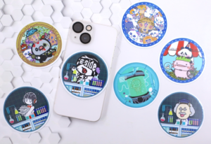 カプセルトイで手に入れたキットに台紙やフィルムを組み合わせて、自分だけの缶バッジが作れちゃいます!