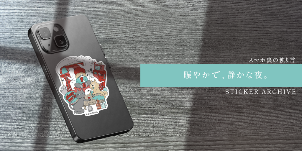 このステッカーは、そんな「賑やかなのに、なんだか寂しい」という言葉にできない夜の空気を、そっとすくい取ってくれます。