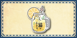 貝殻のストローとレモンを咥えた猫ちゃんがポイントです。