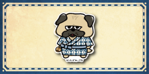 ▲浴衣姿で温泉街を満喫するジト目のパグ。