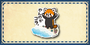 ▲打ち寄せる波になぜか威嚇するレッサーパンダ。