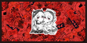 赤い瞳と向かい合う構図が印象的な、かわいさを誇張したデザインです。