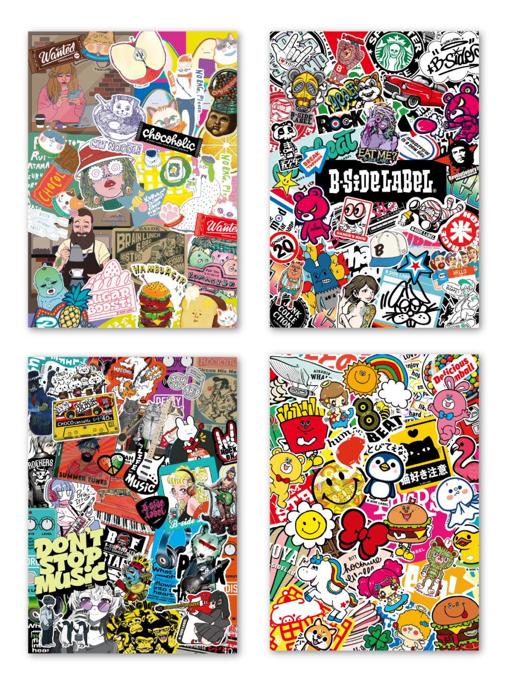 お家でもベタ貼り気分を楽しんでいただきたい!そんな想いから、今回B-SIDE LABELから初登場となる「ステッカーボム」が登場です!デザインは全部で4種類。ベタ貼り風のシートのステッカーなので、デザインをお好きな形に切って貼るだけで、気軽にベタ貼り気分を楽しめちゃいます。お部屋の小物やノート、スマホまわりなど、いろいろな場所で自分だけのアレンジをお楽しみください!